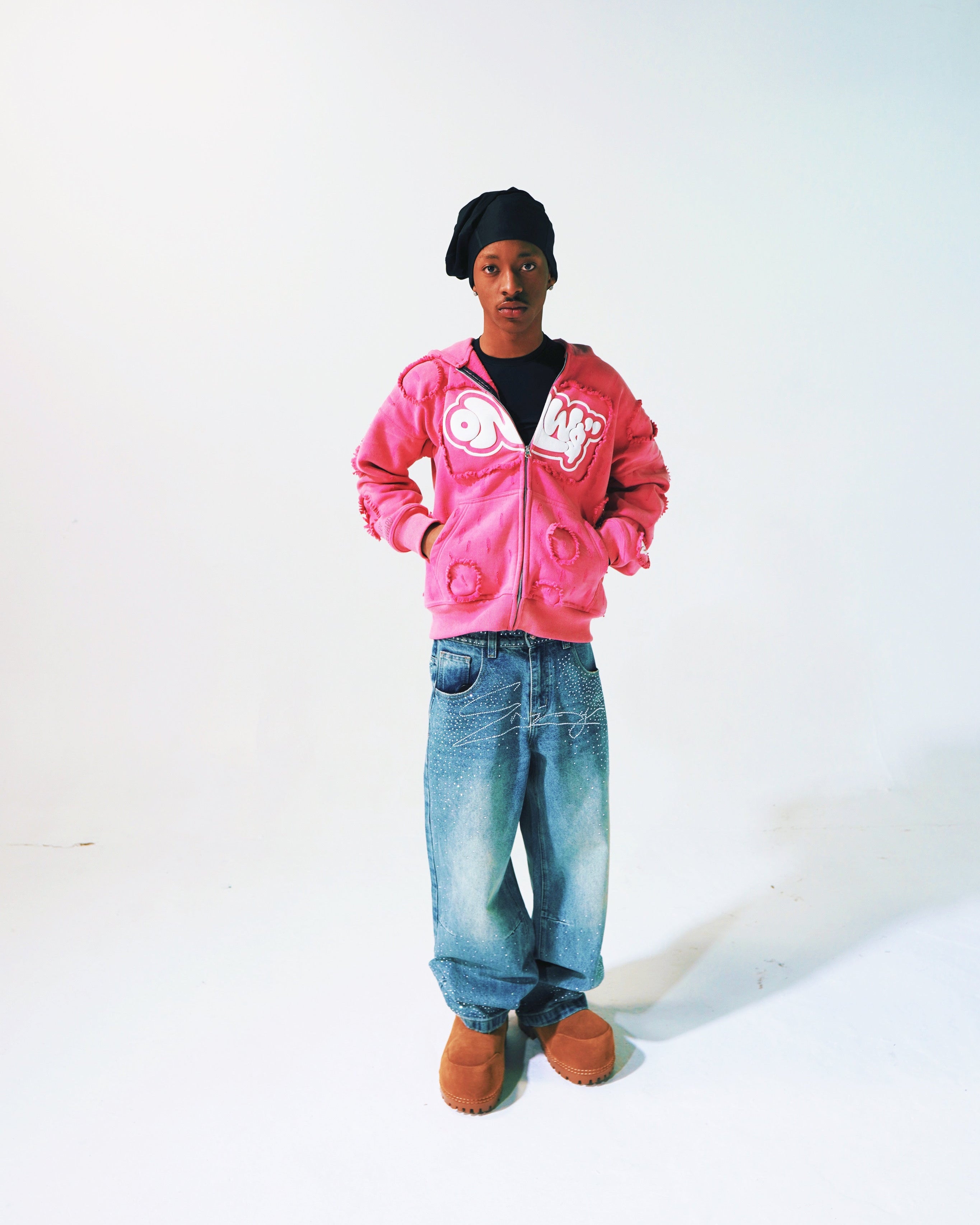 Whether you’re outside shooting content, pulling up to a pop-up, or running a fit check, this windbreaker goes with ANY look — no matter the weather. It’s water-resistant, versatile, and made for the ONW community